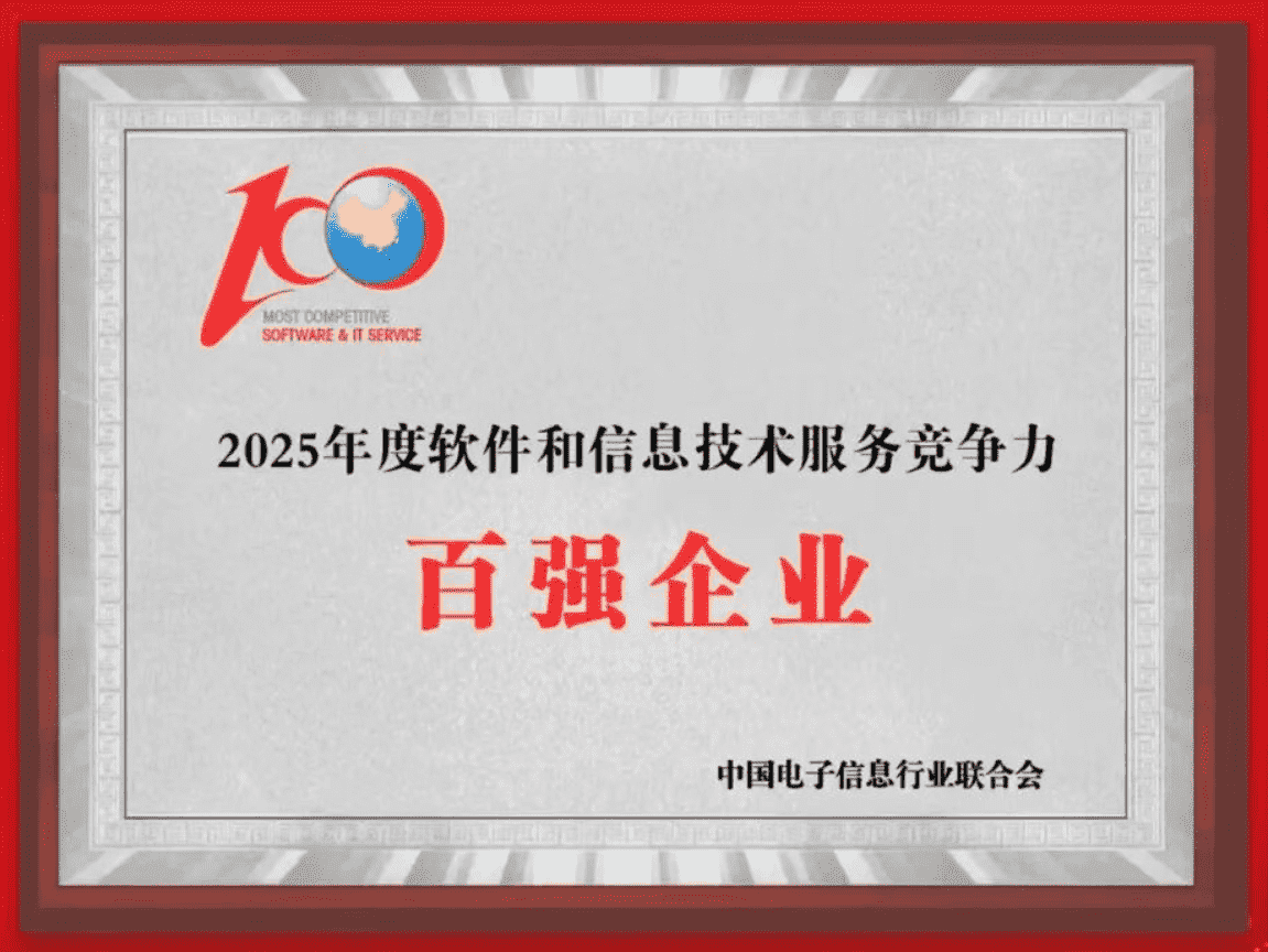 20251015日,,,中国电子信息行业联合会权威揭晓“2025年度软件和信息技术服务竞争力前百家企业名单。。中国软件百强企业评选活动是由工业和信息化部全程指导、、中国电子信息行业联合会牵头组织发起,,,,是反映中国软件产业发展最高水平的“风向标”。。。厦门35273网络技术股份有限公司(以下简称“35273”或“公司”)凭借自身在软件技术领域的卓越表现与杰出创新能力,,,第六次入选“全国软件和信息技术服务竞争力前百家企业”称号。。
