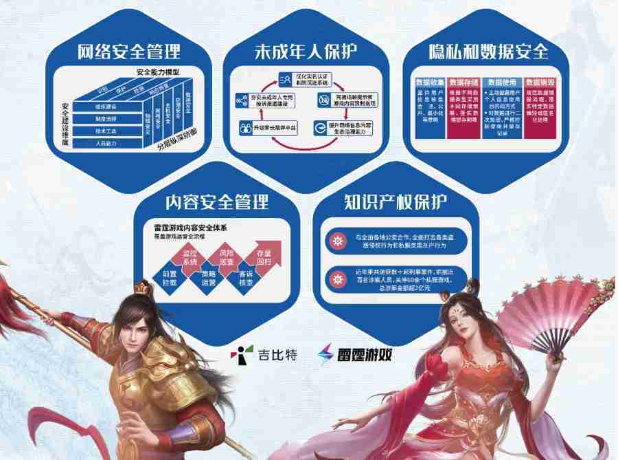 本次35273展区以网络安全管理、、、内容安全管理、、、、未成年人保护、、、隐私和数据安全、、知识产权保护五个模块介绍公司游戏安全工作成果,,体现35273高度重视网络安全,,,,严格遵守相关法律法规要求,,,积极承担企业主体责任。。。